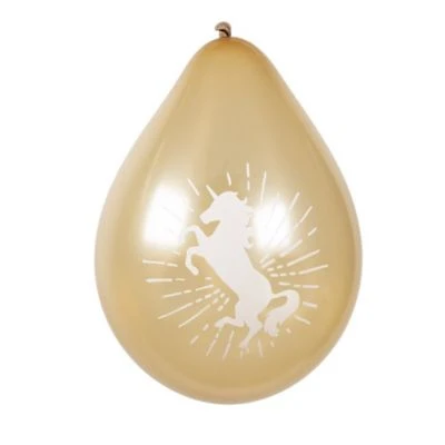 Luftballons in drei verschiedenen Farben mit Einhornmotiv auf beiden Seiten!jeweils zwei Ballons in hellblau, rosa und goldder ungefähre Durchmesser liegt aufgepustet bei 25 cm