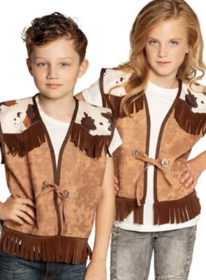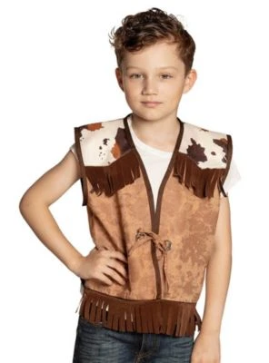 – ärmellose Weste im WesternstyleKunstlederlook mit Fransen und Kuhfelloptik an den SchulternKordel zum Zubinden an der Vorderseite