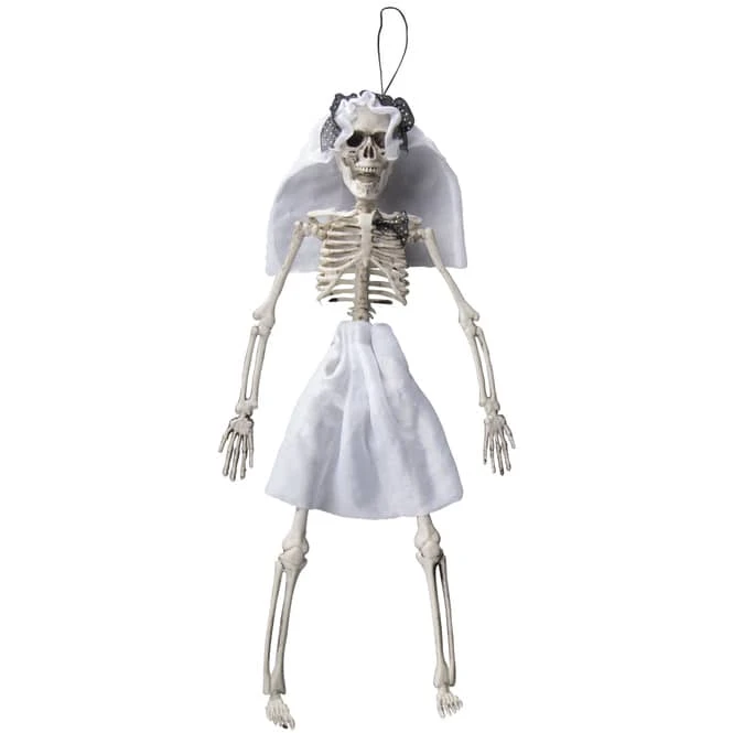 Es gibt kaum Gruseligeres als ein Spaziergang in der Nacht zu Halloween: Überall begegnet man Hexen, Geister und allerlei fürchterlichem Getier. Doch das ist noch nicht alles… Denn auch innerhalb der vier Wände trifft man auf schaurige Stücke, die einem nur allzu gerne den Atem rauben – so wie der schaurig-schöne Dekohänger. Dieser kommt im Hochzeitsdesign samt Brautkleid und Schleier daher und eignet sich dank der authentischen Gestaltung hervorragend, um die Feierlichkeiten stilecht einzuläuten. Er misst 40 cm und lässt sich mithilfe der dafür vorgesehenen Schnur kinderleicht an der gewünschten Stelle anbringen. Somit können Sie binnen Sekunden für eine wohlige Gänsehautatmosphäre sorgen und dem einen oder anderen zartbesaiteten Gemüt einen gehörigen Schrecken einjagen. Also schnappen Sie sich das tolle Skelett und dekorieren Sie munter drauflos!