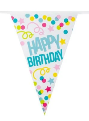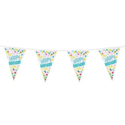 – jeder Wimpel ist im Konfetti-Design und der Aufschrift „Happy Birthday“ bedruckt