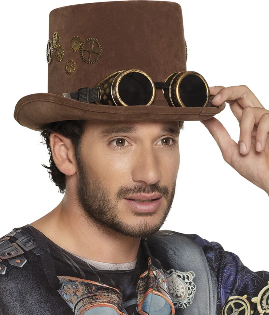 Steampunk Zylinder braun Claude mit Brille Hut für Herren