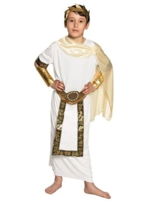 – knöchellanges, weißes Kostüm im Stil einer antiken Togagoldfarbene Armstulpen, ein Stoffgürtel sowie ein glänzend cremefarbener Überwurf verleihen Dir eine herrschaftliche Erscheinungder Lorbeerkranz aus goldfarbenem Stoff darf natürlich nicht feh…