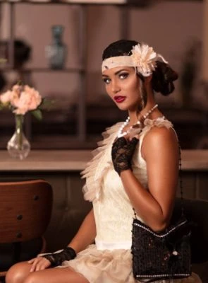 – weiße 20er Jahre Halskettekünstliche Perlen in verschiedener Größeedler Schmuck für 20er Jahre Kostüme
