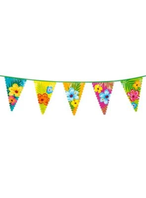 – In tropisch bunten Farben, mit fröhlichen Hibiskusblumen, schlängelt sich diese Wimpelkette auf stolzen 6 m Länge